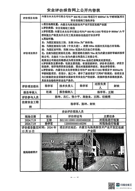 内蒙古永太化学年产800吨C1202等项目中800Nm³/h甲醇