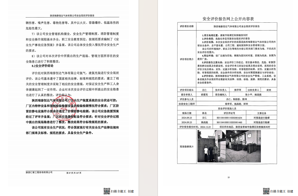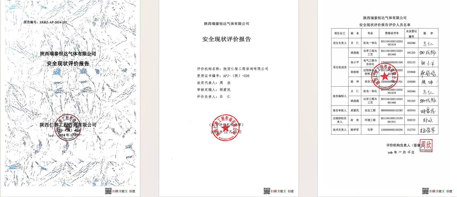 陕西瑞泰恒达气体有限公司 安全现状评价报告