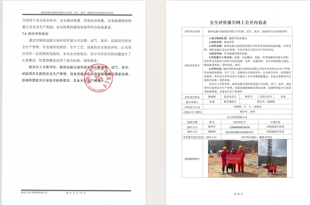 陕西远能压裂、试气、录井、试油项目现状评价