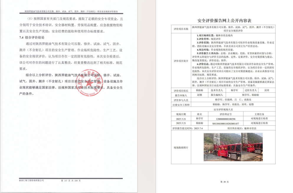 陕西羿能油气压裂、修井、试油等项目现状评价