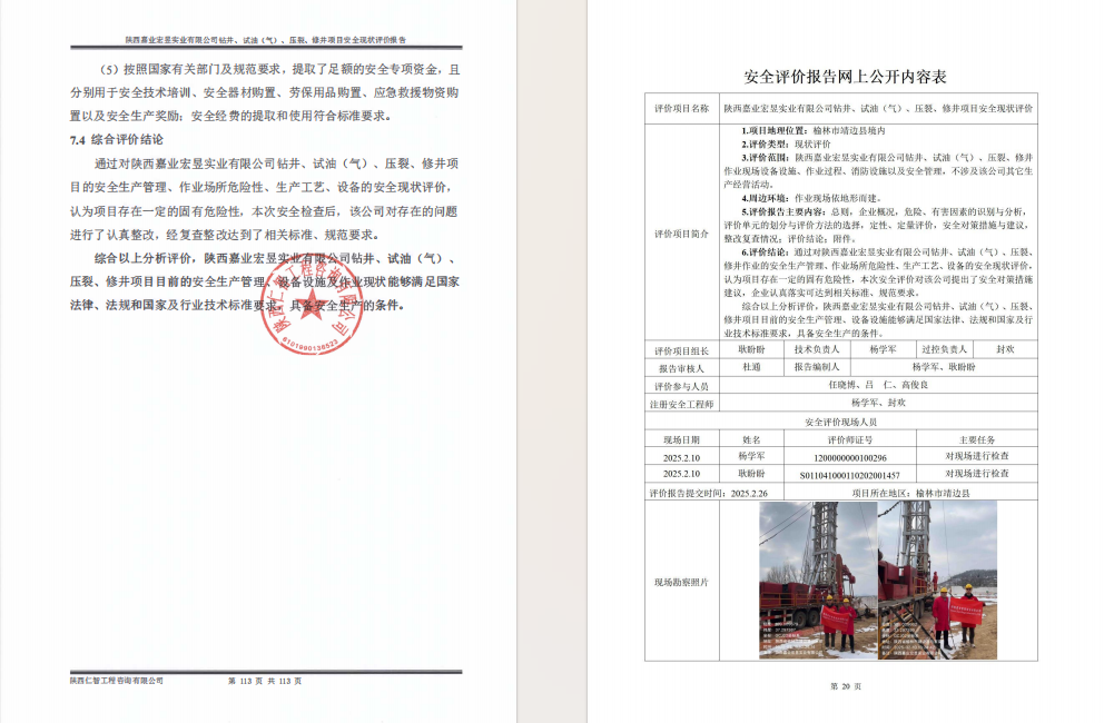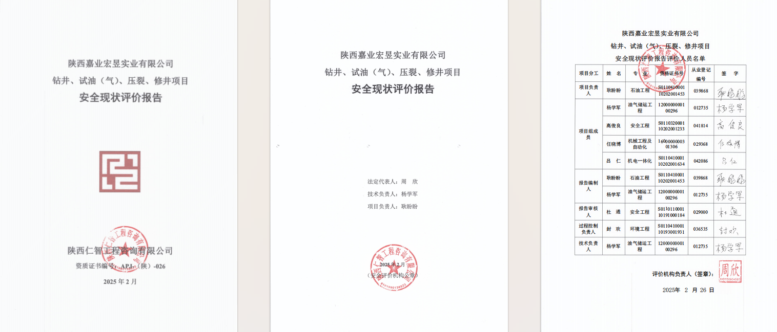 陕西嘉业宏昱钻井、试油(气)等项目现状评价