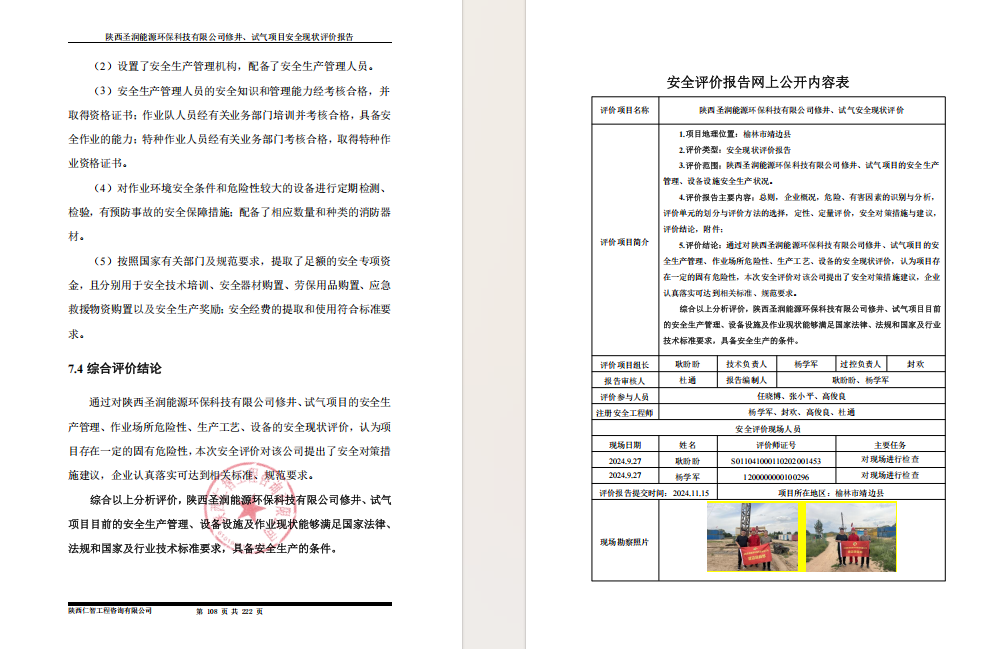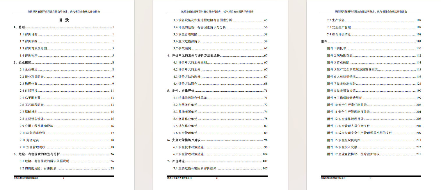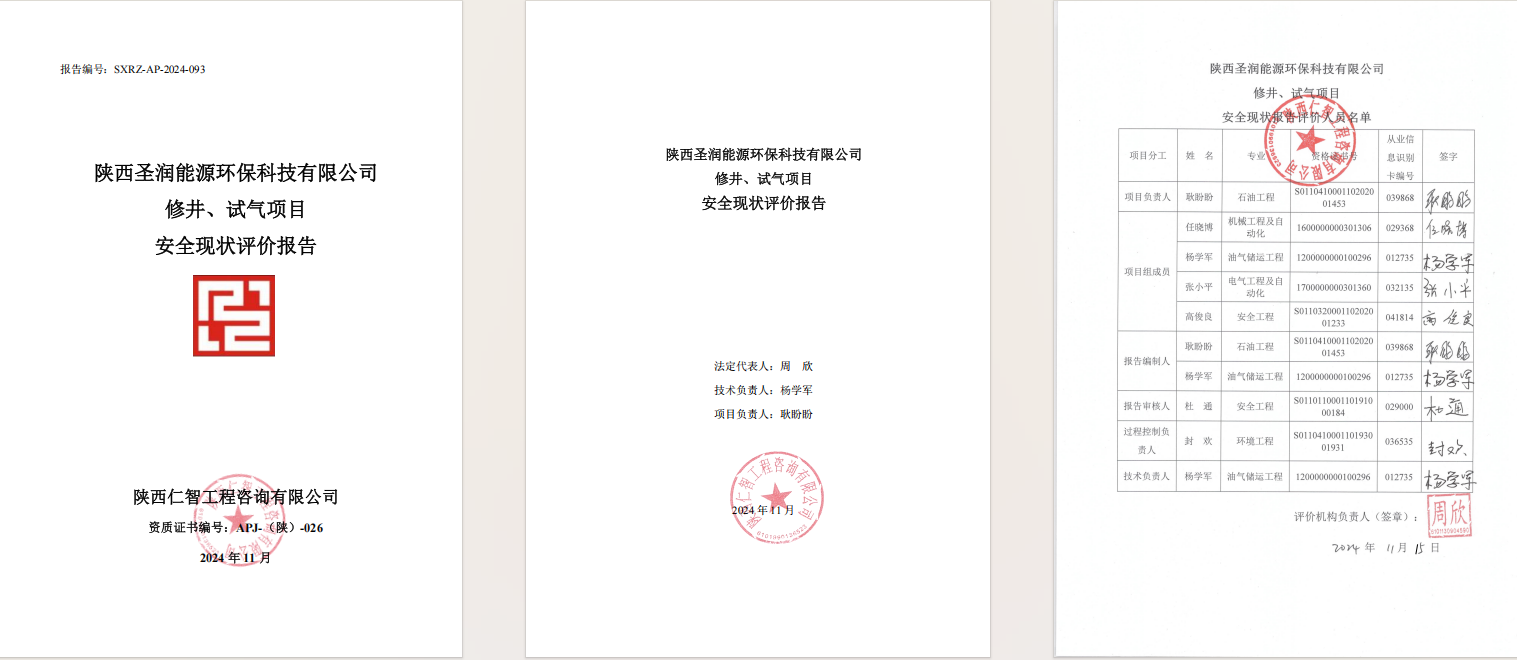 陕西圣润修井、试气项目安全现状评价