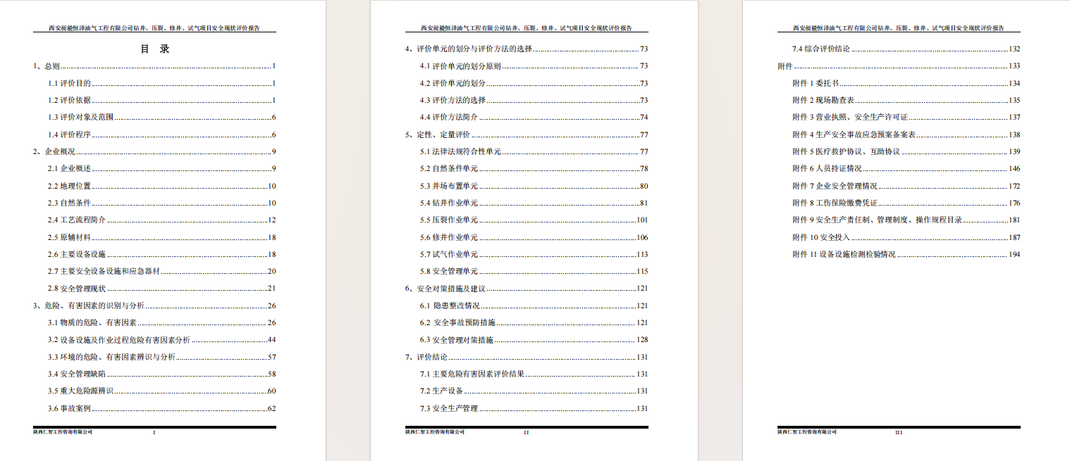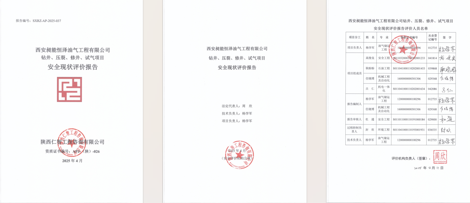 西安昶能钻井、压裂、修井、试气 安全现状评价