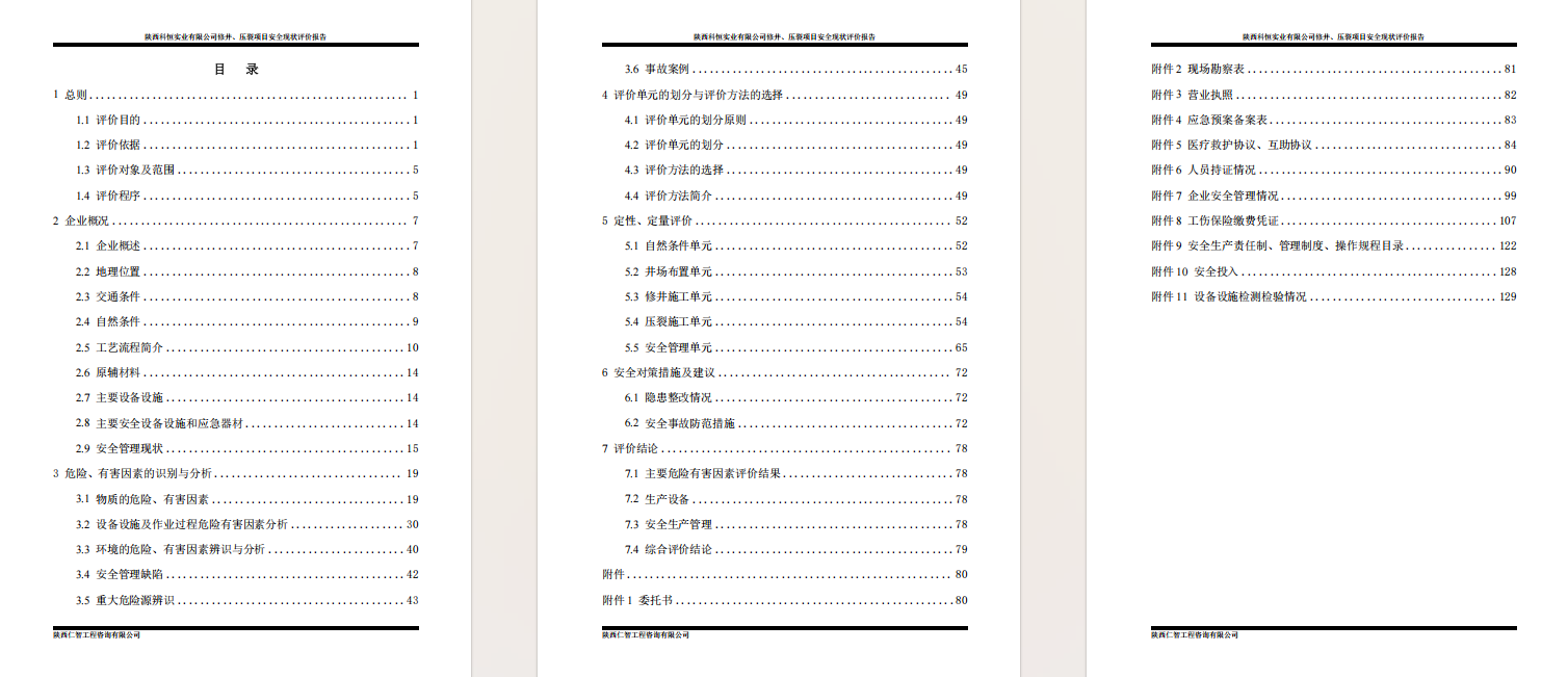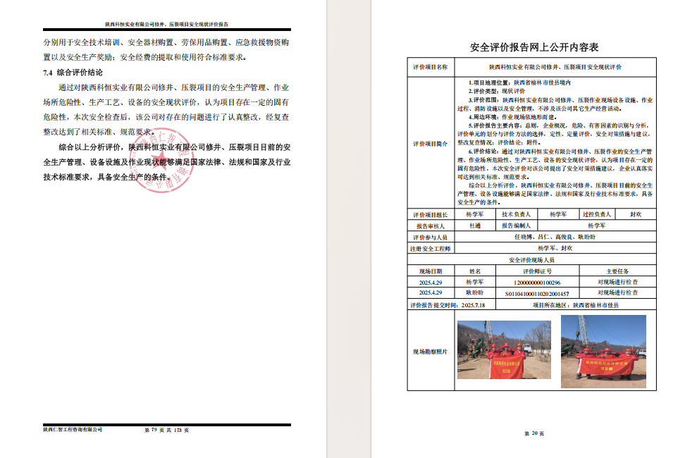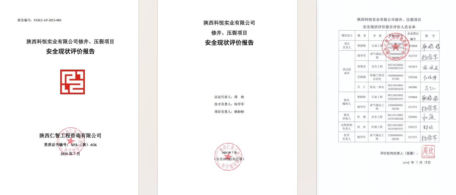 陕西科恒修井、压裂项目 安全现状评价
