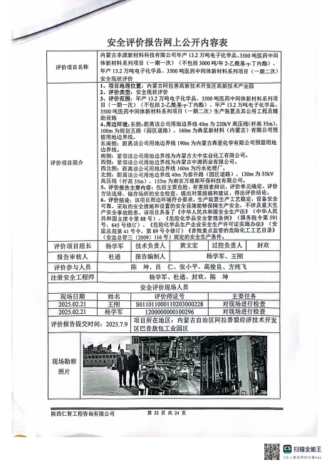 内蒙古幸源新材料年产13.2万吨电子化学品现状评