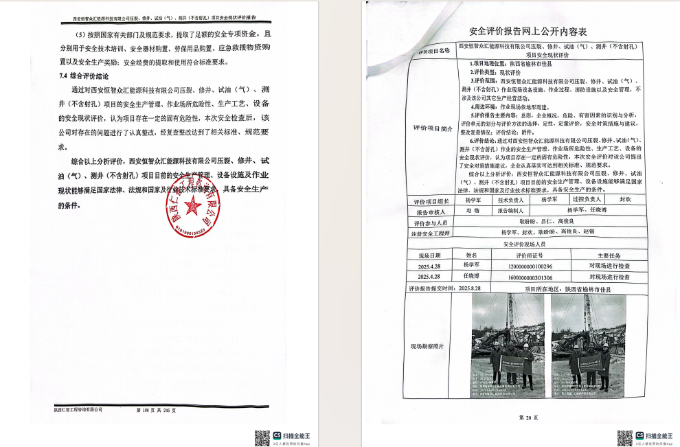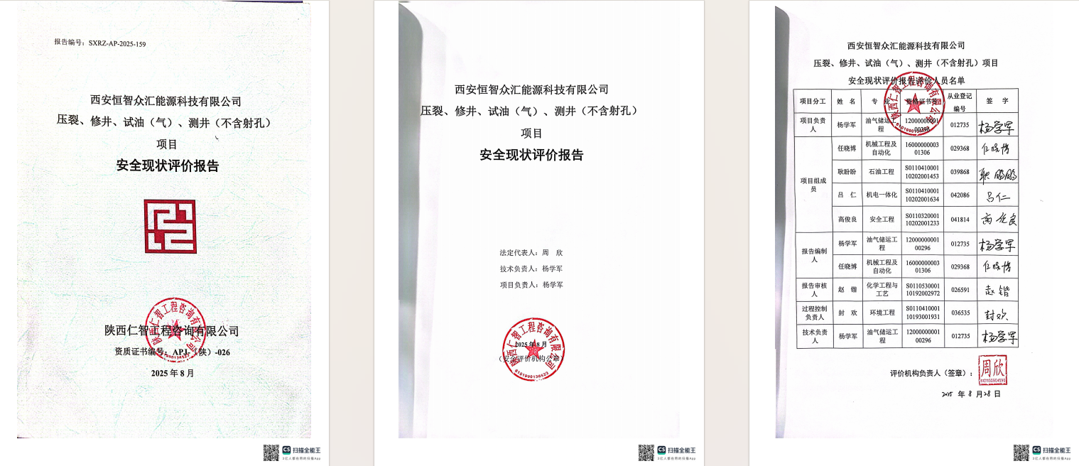 西安恒智众汇能源压裂、修井、安全现状评价