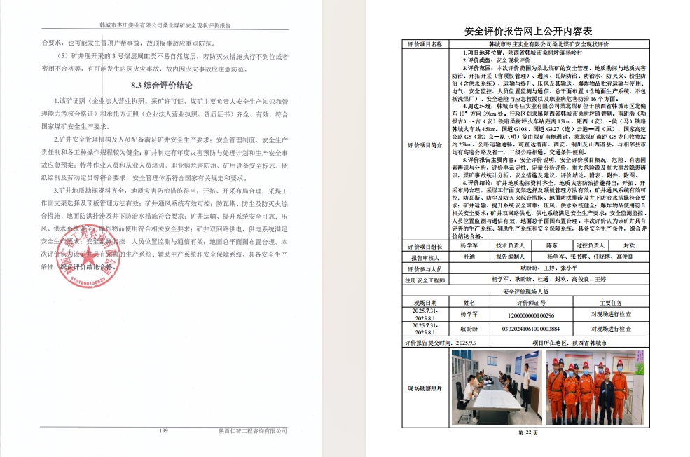 韩城市枣庄实业有限公司桑北煤矿安全现状评价
