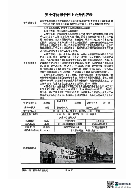 内蒙古金鄂博氟化工安全设施竣工验收评价
