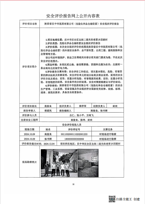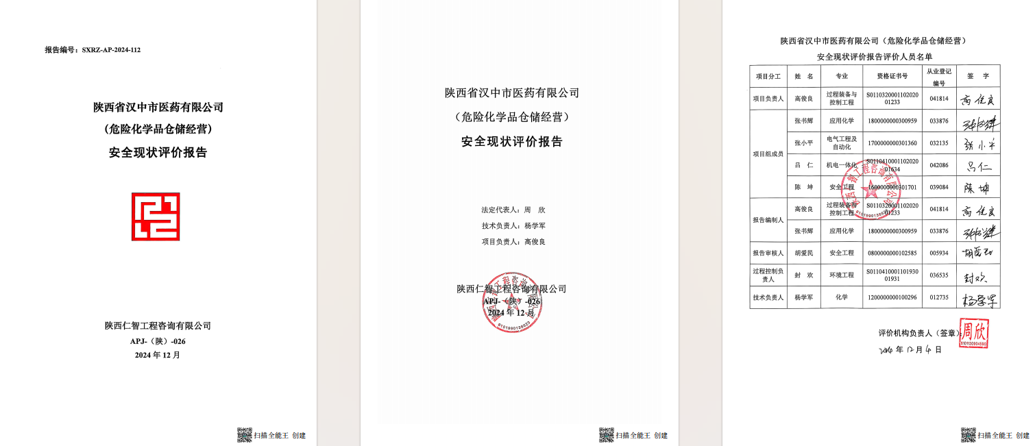 陕西省汉中市医药有限公司安全现状评价报告