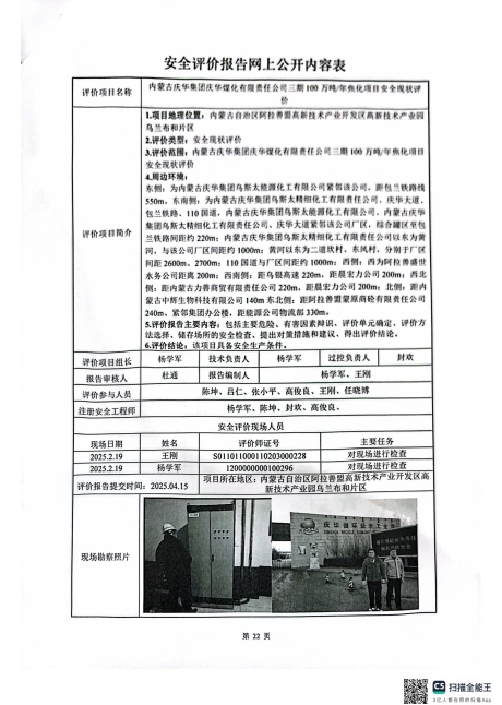 内蒙古庆华集团庆华煤化三期焦化项目安全现状