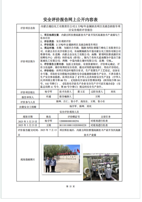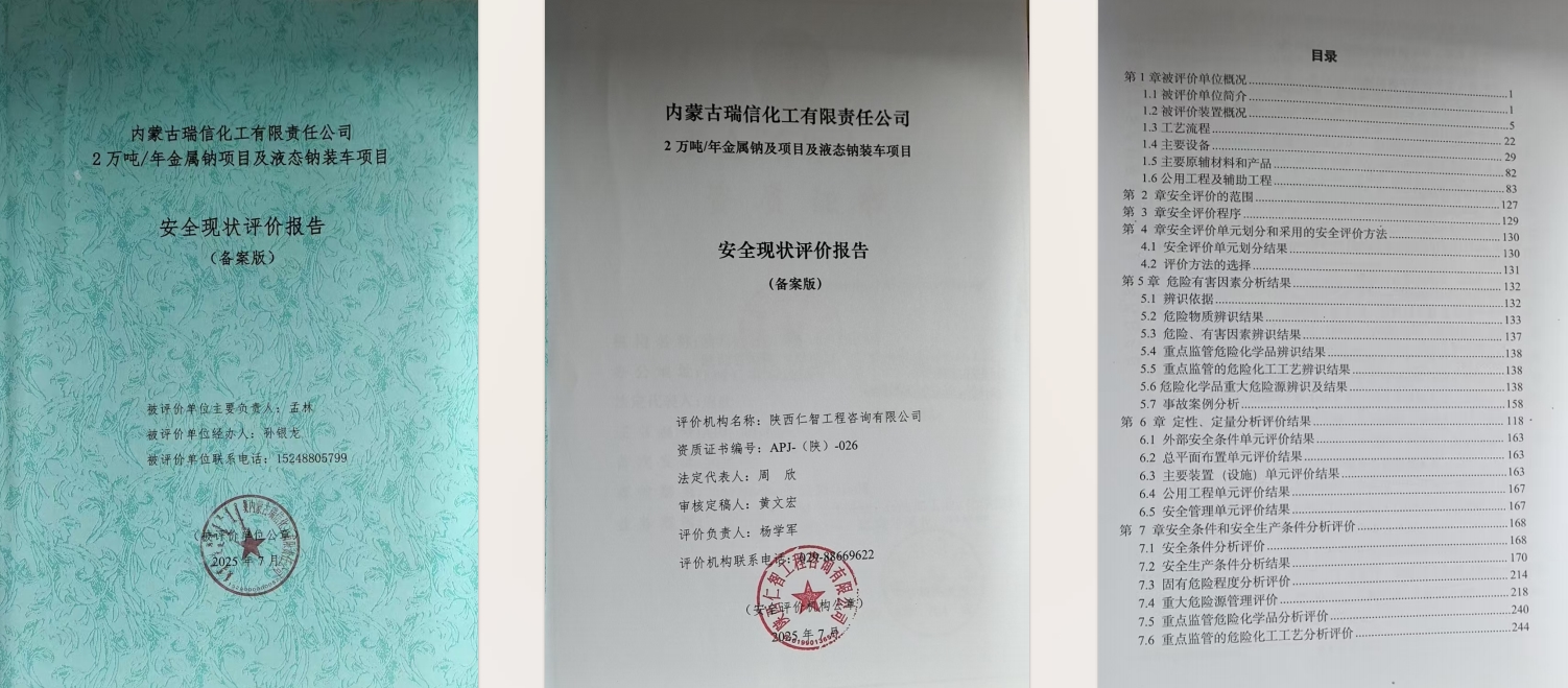 内蒙古瑞信化工2万吨/年金属钠项目 安全现状